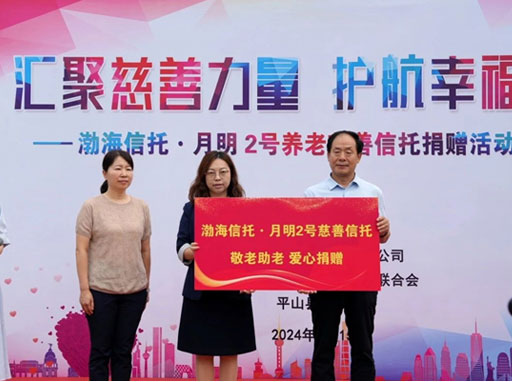 2024年8月15日,“渤海信托?月明2號(hào)養(yǎng)老慈善信托捐贈(zèng)活動(dòng)”在河北省平山縣古月鎮(zhèn)大地村舉行。截至8月底,“月明2號(hào)”慈善信托已完成對(duì)石家莊地區(qū)五區(qū)三縣約200位老人的捐贈(zèng)。